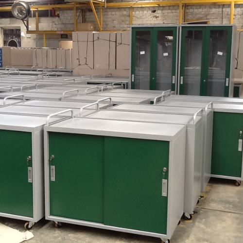 Armários resistentes para armazenamento de documentos, EPIs, materiais internos e itens de uso diário.